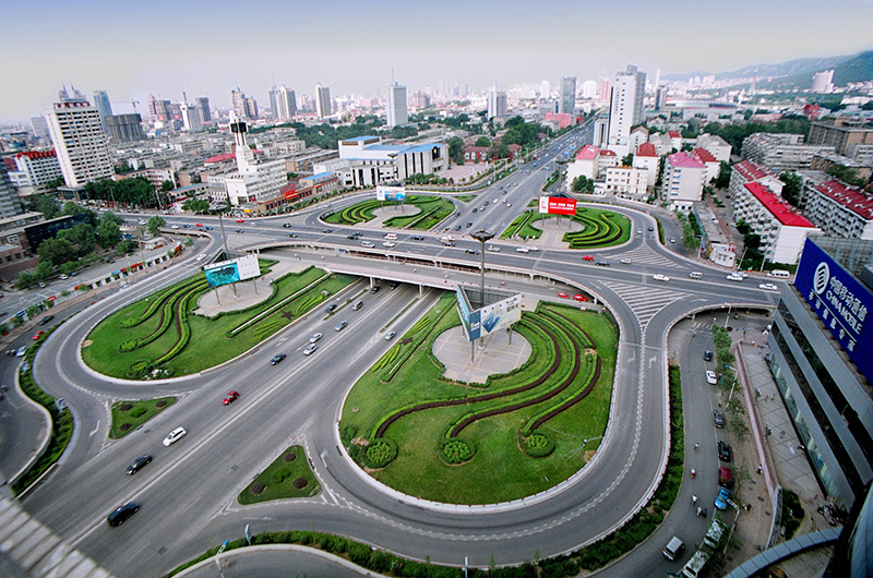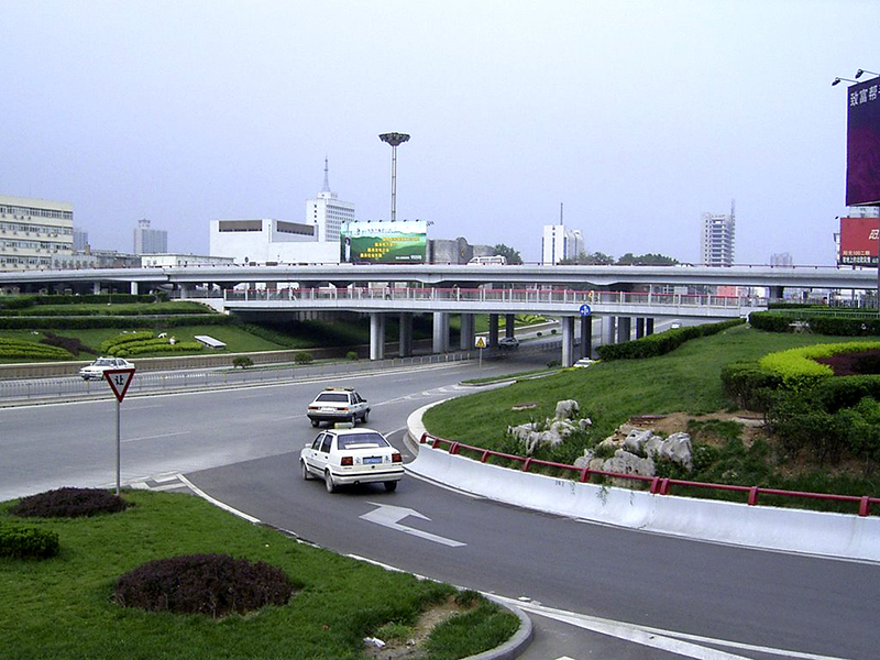 為苜蓿葉形三層互通式立交,兩條主干路均寬 50 米,橋梁上部采用簡(jiǎn)支箱梁,寬腹 T 梁及三孔連續(xù)板結(jié)構(gòu),預(yù)制安裝,施工簡(jiǎn)單;下部蓋梁為暗藏式,墩身采用蝙蝠式柱,外形美觀;基礎(chǔ)為鋼筋砼擴(kuò)大基礎(chǔ)及灌注樁;該立交充分利用原有排水系統(tǒng),雨污水完全自流,經(jīng)濟(jì)合理。榮獲市長(zhǎng)金杯獎(jiǎng),被評(píng)為泉城十大景觀之首。